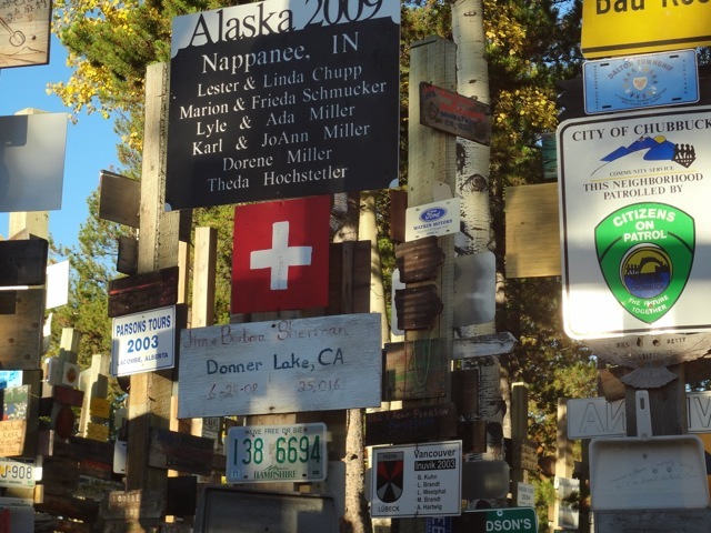 5000 plaques de voitures ou autres à Watson Lake et mots d’amour façon indienne au bord de la route….