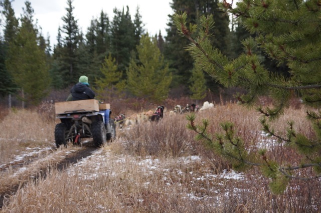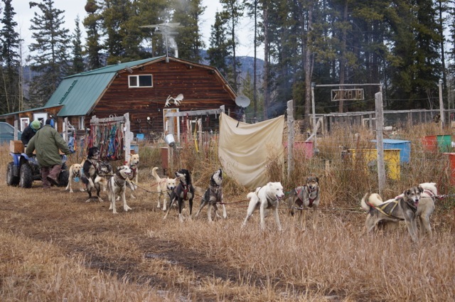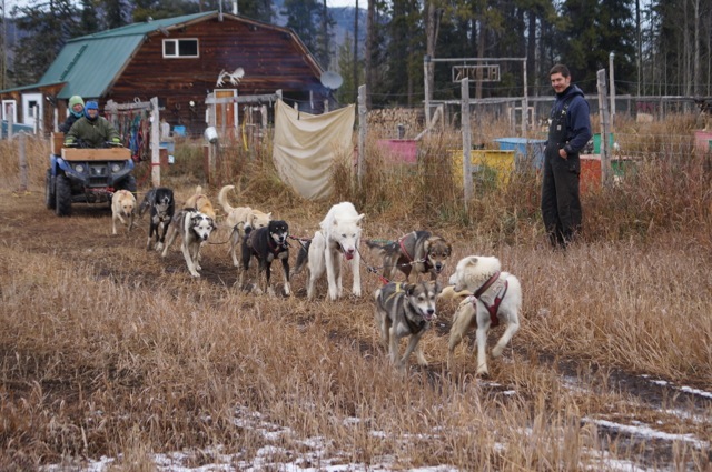 Mais ce matin on ne rigole plus Marcelle sort son écurie de course et tout son chenil… on commence à s’entrainer pour l’hiver.. Chaque chien à sa place et attention : Départ…..Comme de vrais athlètes, nos quadripèdes obéissent à leur maitre au doigt et à l’œil…